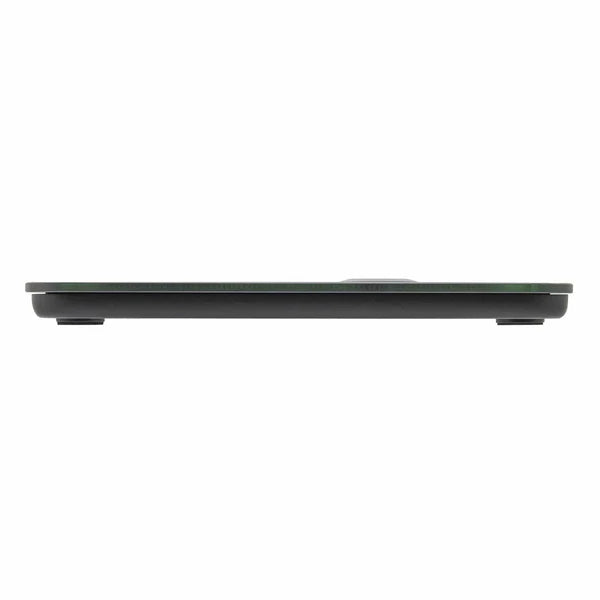 The scale offers the perfect amount of functionality in both design and function to help those looking to take control of their health regimen. The 12.2" x 11.8" black glass platform with stainless steel accented design fits into any bathroom environment. Estimate body fat, body water, and muscle mass percentages for up to 10 users in either standard or athlete modes. View information quickly from a 3.3" x 2.3" blue backlit display. This scale also features a high 400 lb capacity, a 5-year limited warranty, and 3 AAA batteries.